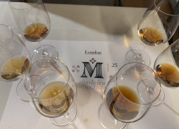 A line-up of Crus Bourgeois Superieur wines at a tasting of the 2022 vintage